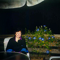 Alida home with her morning glories at night